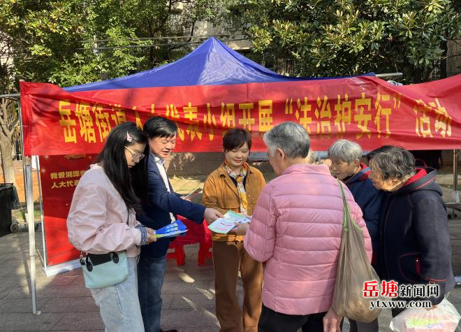 岳塘融媒10月27日訊(通訊員:姜奧)10月24日上午9時,岳塘區(qū)岳塘街道瓦窯塘社區(qū)內人頭攢動,岳塘街道人大代表小組策劃的“法治護安行”活動正式拉開帷幕?;顒右劳行聲r代文明實踐志愿服務集市,吸引了大批居民參與。岳塘街道黨工委主要負責人、人大工作負責人與多名區(qū)人大代表到場,以“面對面傾聽、心貼心解答”的實際行動,為居民送上暖心服務。